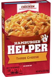America’s favorite Hamburger Helper is made with 100% REAL cheese and Italian-style herbs for the classic taste you love most. Our products are made with NO artificial flavors or colors from artificial sources. Add Your Own Twist! Add some pizzazz! Stir in chopped red pepper just before simmering. Stir in cooked peas just before serving. Sprinkle with ground pepper just before serving.